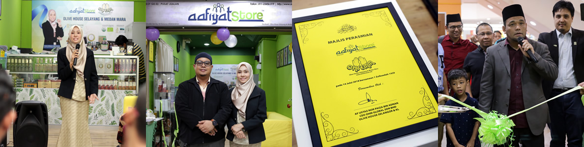 Demi mengorak langkah lebih jauh, hasil latihan dan bimbingan yang diberikan oleh pihak Olive House dan konsistensi jualan yang memberangsangkan, Puan Normala Khalid & suami Encik Azwan Azrul telah membuka premis perniagaan dengan tanda nama jenama kedai Olive House, Aafiyat Store di pusat beli belah Selayang Capitol Complex yang berhampiran dengan Hospital Selayang. Pembukaan premis perniagaan ini dengan rasminya dilancarkan oleh Al-Fadhil Ustaz Nor Paiza Selaku Pengurus Ejen Lembah Klang 2 pada tarikh 14 Julai 2018 bersamaan 1 Zulkaedah 1439 dengan jayanya
